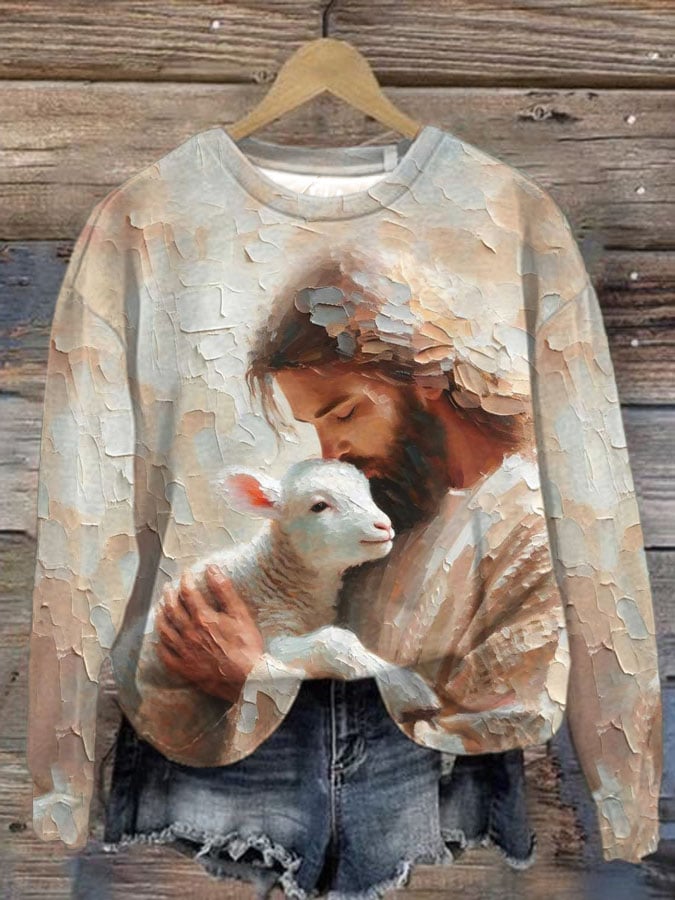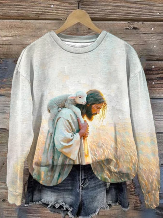 Women's Jesus Saves The Lamb Print Casual Round Neck Sweatshirt