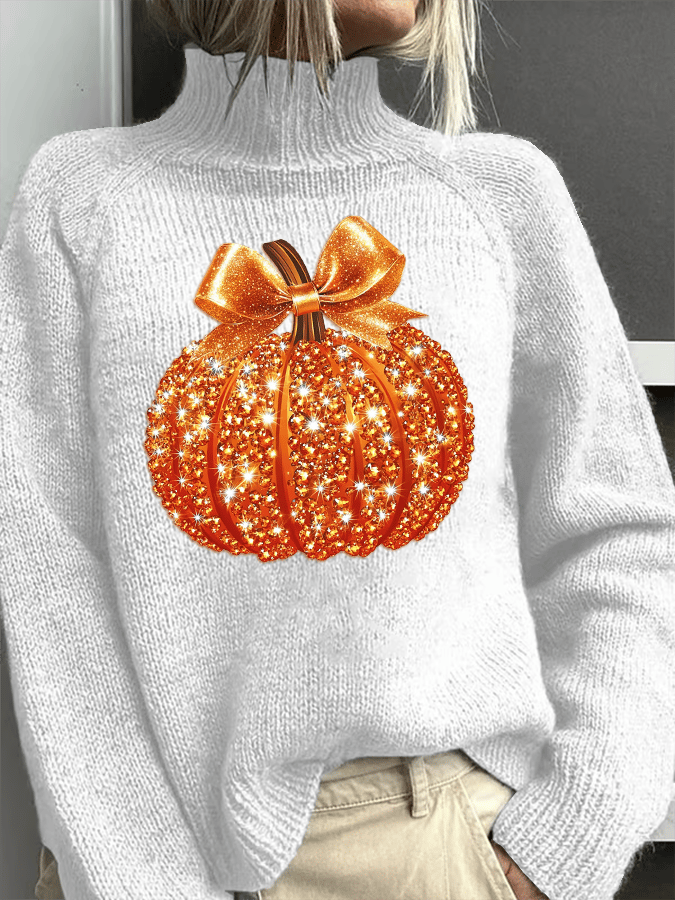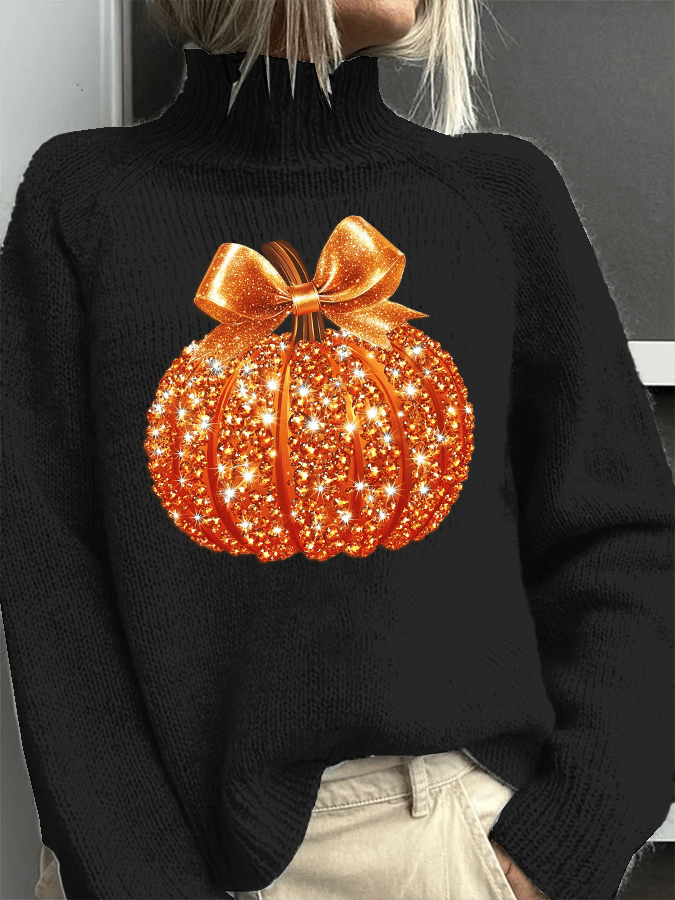 Women's Fall Sequin Pumpkin Turtleneck Sweater