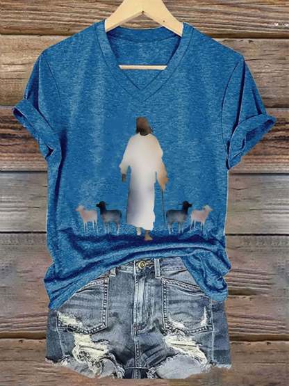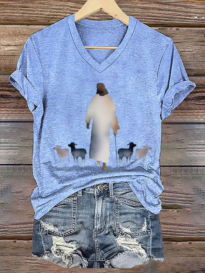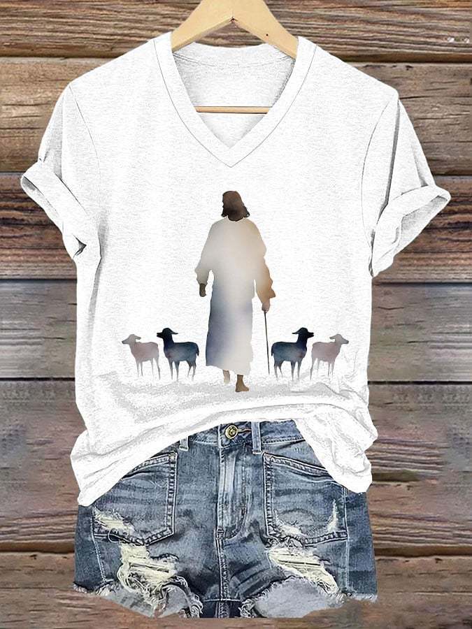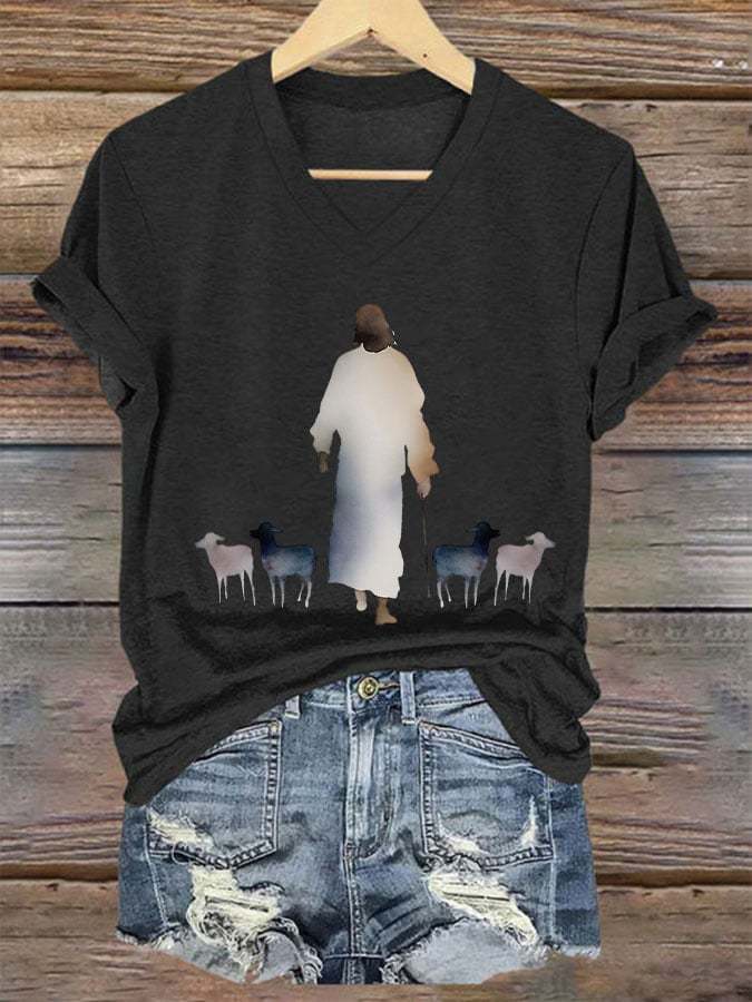 Women's Jesus The Good Shepherd V Neck T-Shirt