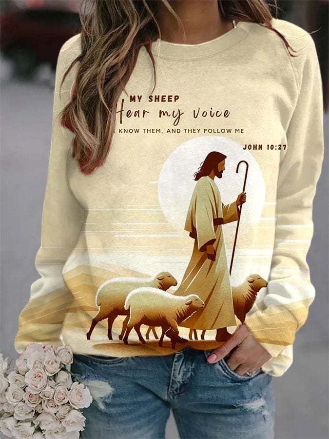 Women's "My sheep hear my voice, and I know them, and they follow me" printed sweatshirt